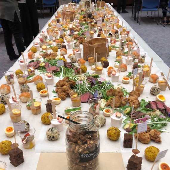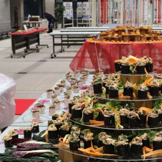 湘南の海と山、海を照らす太陽をイメージした石塚さんの作品とそのコンセプトをイメージした、まるで美術絵のようなフィンガーフードたち。400名様分、本当に圧巻でした。
